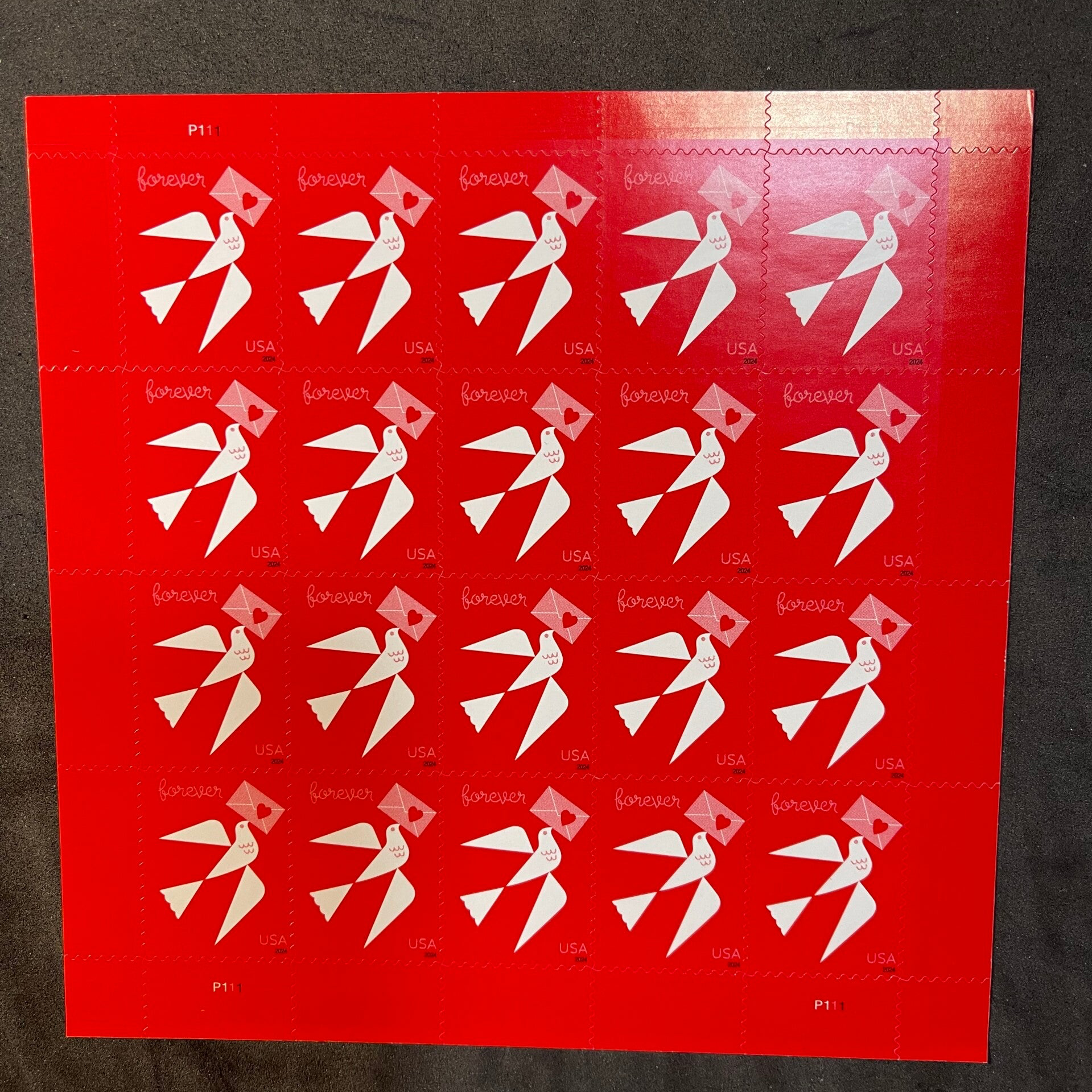You will receive 1 stamp sheet containing 20 Forever stamps.