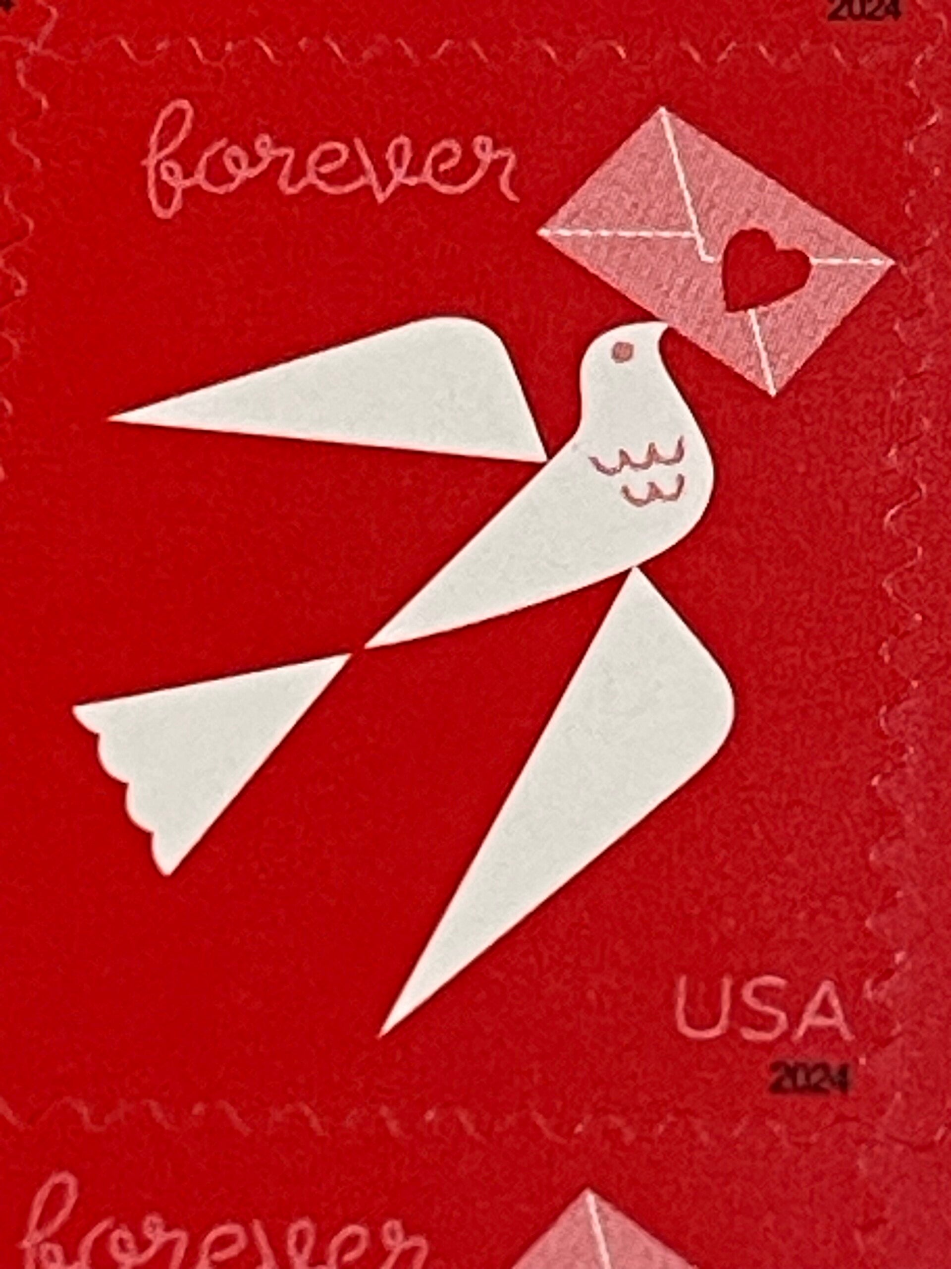 LOVE Forever White Bird Carrying Pink Envelope Stamp Sheet of 20, MNH